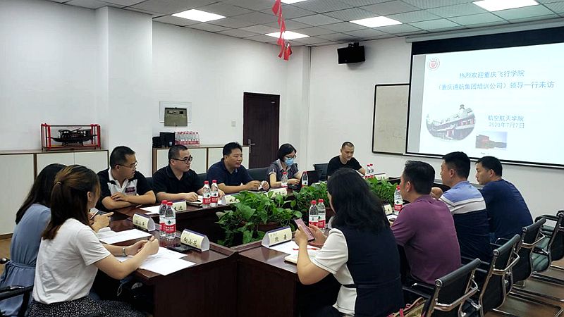 2020年7月7日下午,由学校教育发展基金会牵头,飞行学院重庆通用航空培训有限公司党委书记、总经理刘飞牛一行到访学院,与基金会及学院领导、教师代表就相关合作进行座谈。会议由基金会副秘书长何荣山主持,学院党委书记万玲、副院长姚建尧等参会。 万玲代表学院对刘飞牛总经理一行的到来表示热烈欢迎。她提到,学院与重庆飞行学院重庆通航集团有良好的合作前景,希望通过交流进一步明确合作方式,以达到优势互补...