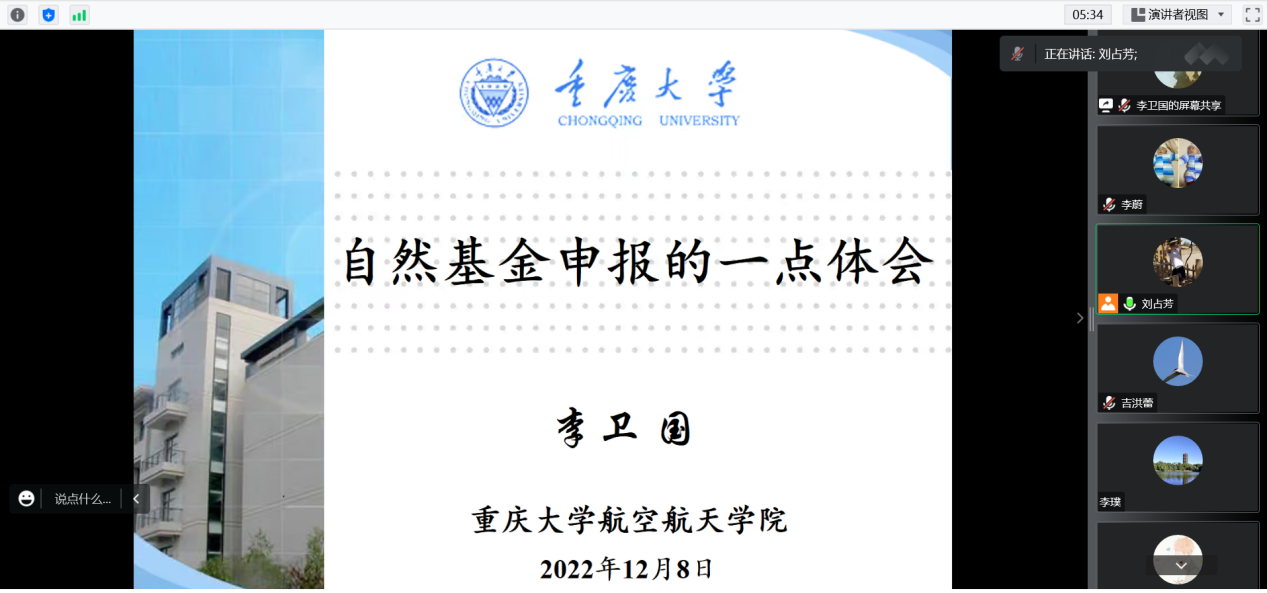 2022年12月8日下午3点,奈飞 在线上召开2023年度国家自然科学基金申报辅导会,邀请学院副院长(主持工作)李卫国为全院教师进行基金辅导。学院党委书记万玲、副院长刘占芳及全院教师50余人参会。会议由刘占芳主持。首先,李卫国教授简要介绍了学院近几年获批国家自然科学基金的情况,特别是今年学院获批国家自然科学基金14项,位居学校前列。随后,李卫国教授从自己多年申报基金的经验谈起,阐明了基金的重要性,鼓励老...