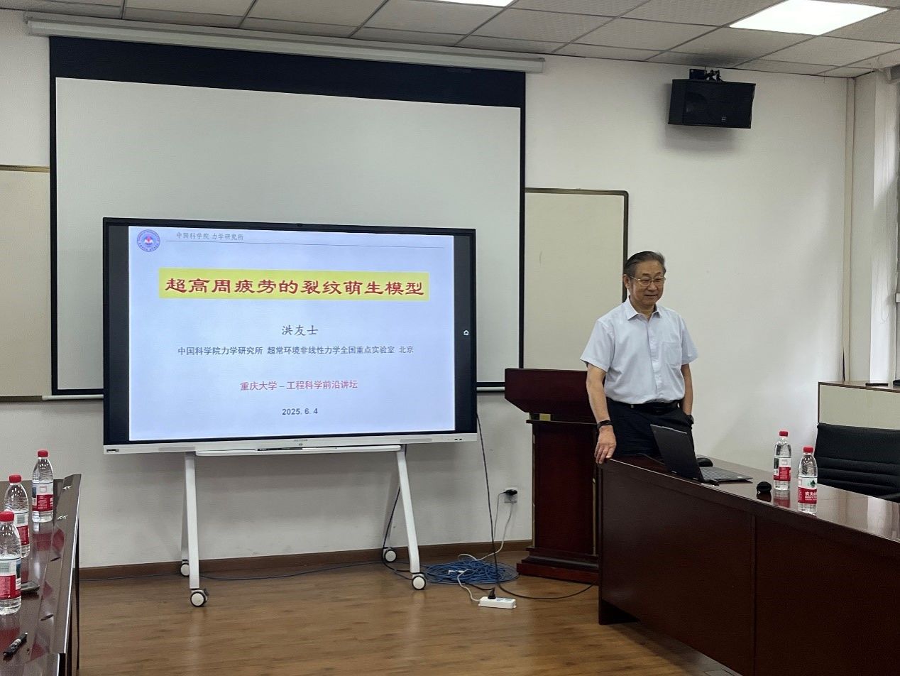 详情2025年6月4日上午,应奈飞 邀请,中国科学院力学所原所长洪友士研究员在理科楼205会议室出席由工程学部主办的工程科学前沿讲坛,并作了题为“超高周疲劳的裂纹萌生模型”的学术报告。报告由奈飞 副院长(主持工作)李卫国教授主持,学院副院长陈立明教授、力学学科带头人刘占芳教授及工程学部师生40余人出席听讲。李卫国首先对洪友士表示热烈欢迎,并对报告人作了简介:洪友士,博士,中国科学院力学所研究员、...
