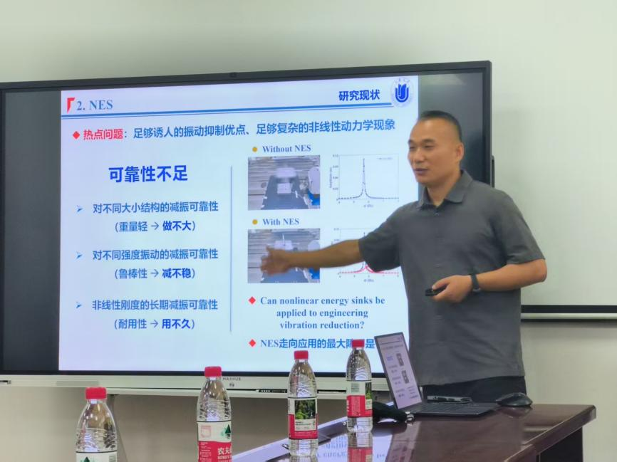 详情2025年7月14日下午,应奈飞 邀请,上海大学丁虎教授在理科楼出席现代力学中心学术讲座,并作了题为“非线性减振器可靠性动力学设计与振动控制应用”的报告。报告由奈飞 副院长(主持工作)李卫国教授主持,学院教师代表和研究生共计30余人参加学术交流。李卫国对丁虎表示热烈欢迎,并对报告人作了介绍:丁虎教授现任上海大学振动工程与控制研究所所长、研究员、博导。曾任加拿大多伦多大学机械工程系访问教授、美...
