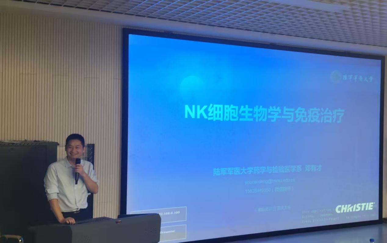 详情2025 年 10 月 25 日下午,应奈飞 邀请,陆军军医大学药学与检验医学系邓有才教授出席工程学部主办的工程科学前沿讲坛,在理科楼010会议室作了题为 “NK 细胞生物学与免疫治疗” 的学术讲座。报告由奈飞 金晓清教授主持,学院青年教师代表及工程学部师生共 40 余人到场聆听。金晓清对邓有才教授的到来表示热烈欢迎,并对报告人作了介绍:邓有才教授是陆军军医大学临床血液学教研室主任、教授、博士生导师,国家优...