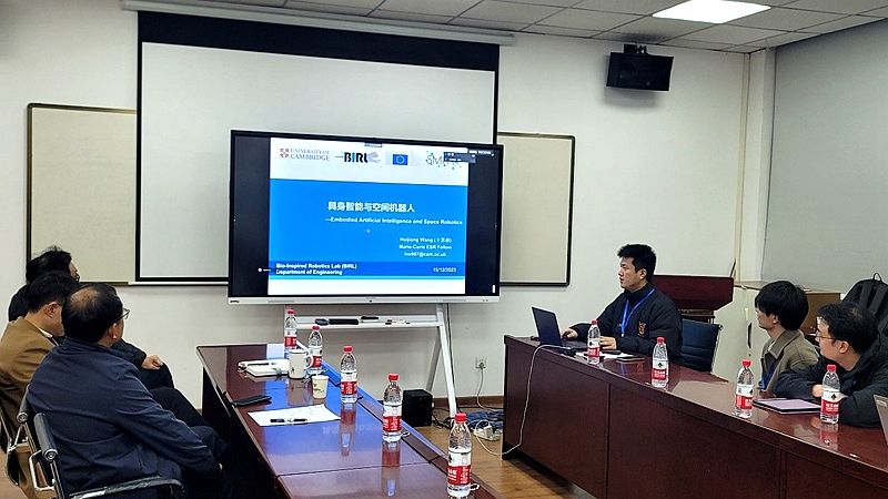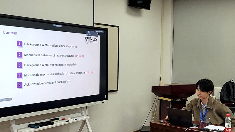 随后,各位青年学者围绕其研究的前沿领域、热点问题分别做了报告。新加坡国立大学机械工程系郭笑博士首先介绍了团队在先进材料和结构的力学行为研究中的最新进展,同样来自新加坡国立大学,主要从事流体力学研究的朱光普博士汇报了多相流数值模拟及应用相关情况。剑桥大学机械工程专业玛丽·居里学者王慧疆博士通过对“具身智能”这一概念的阐释,介绍了具身智能与空间机器人相关研究进展。