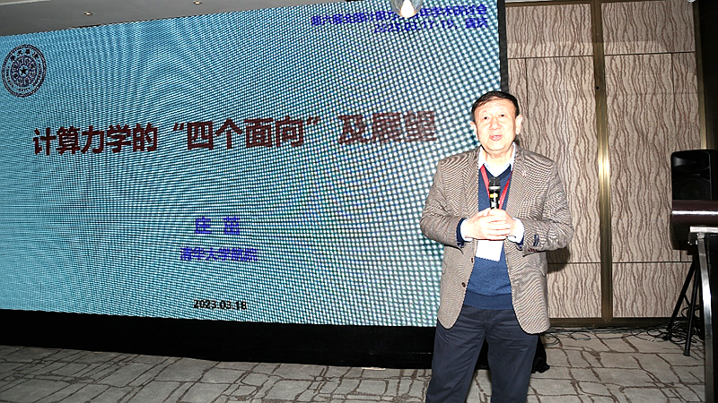 刘占芳教授做了题为《计及转动变形的固体大变形度量》的特邀报告,阐释了转动变形在物质变形描述中的重要性。万强研究员做了题为《复杂装备中的计算力学问题研究进展》的特邀线上报告,讲述了计算力学在工程复杂装备中的应用和未来需求。其余11名40岁以下的青年学者分别介绍了自己的科研进展。