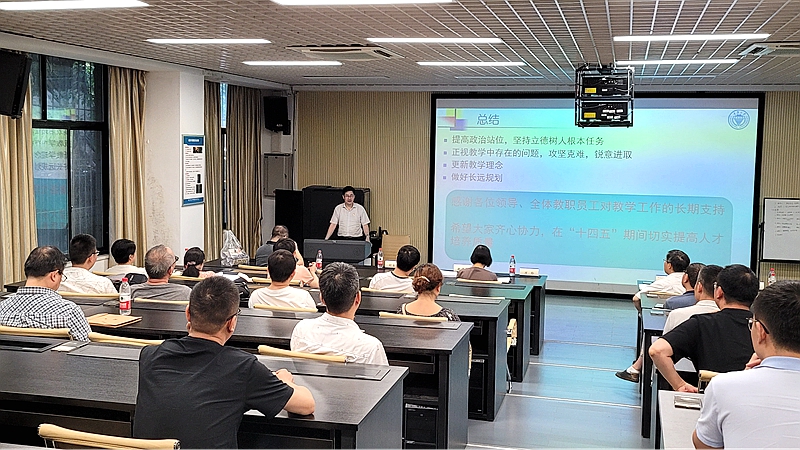 随后,廖瑞金对学院本科教学工作提出了几点要求。一是每位教师要做到对自己严格要求,要爱生如子;二是夯实教研组活动,充分利用现代信息技术;三是高度重视教材建设,由骨干教师带头,编写修订完善教材;四是全学院联动,提升本科学生的理想和追求;五是完善激励措施。