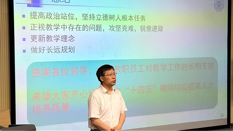 姚建尧首先从本科教学整改背景、存在的问题、整改工作方案、整改目标和实施计划、保障措施等几个方面对学院本科教学情况进行了汇报。他指出全院教职工要提高政治站位,坚持立德树人根本任务,在“十四五”期间切实提高人才培养质量。