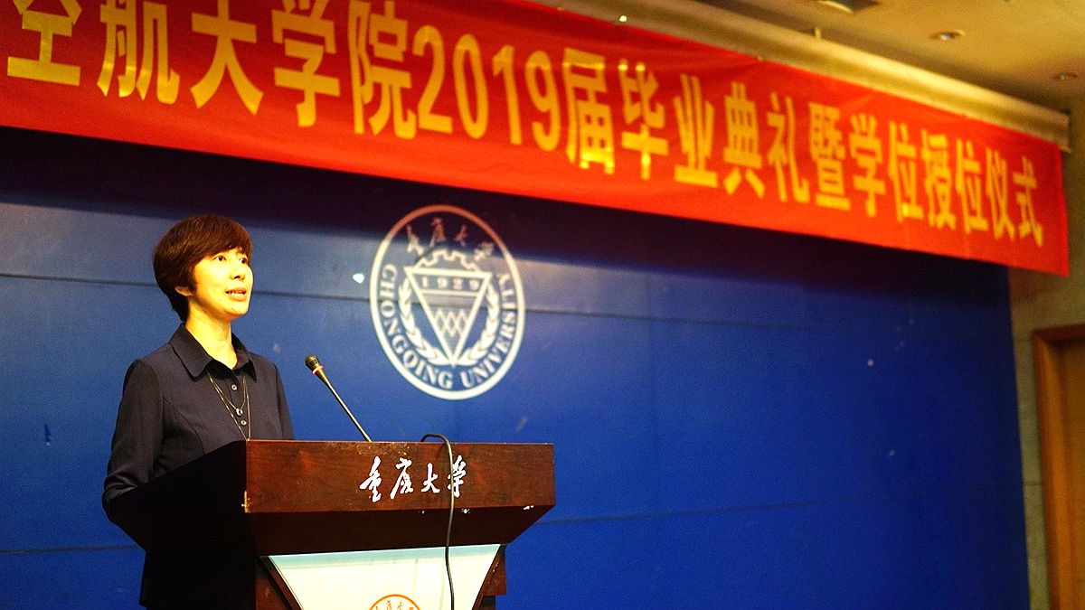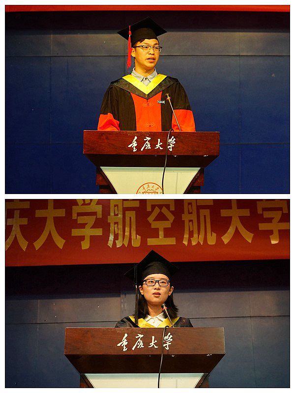 随后,研究生代表寇海波和本科生代表彭方澜同学分别发言,寇海波深情回顾了自己的研究生生活,他表示将谨记自己身为重大人所肩负的佑启乡邦,振导社会的责任,在工作岗位中展现出航院学子的风采。彭方澜提到,本科四年目睹了航院可喜的发展成就,毕业之际,深感肩负着承前启后,为学院与母校争光的重任。两位同学在发言最后代表2019届毕业生向朝夕相处的同学、传道授业的老师表达了由衷的感激之情,并祝福学院和学校越来越好。