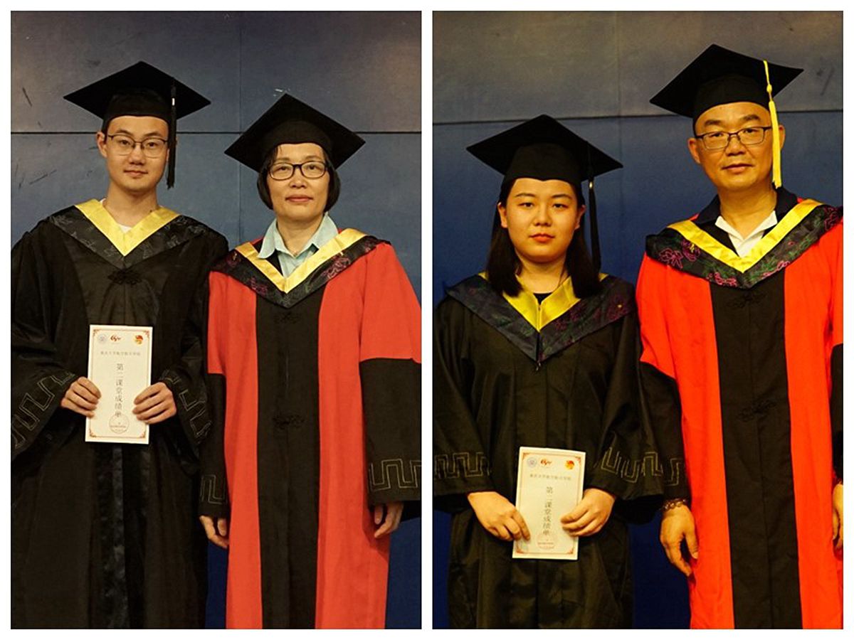 在严波副院长宣读授位决定后,毕业生们身着礼服,头戴学位帽帽,依次走上主席台。万玲书记、胡宁院长亲切地为同学们扶正流苏,并颁发了独具航院特色的第二课堂成绩证书。同学们面带微笑与二位导师合影,他们的付出与收获在这一刻定格。