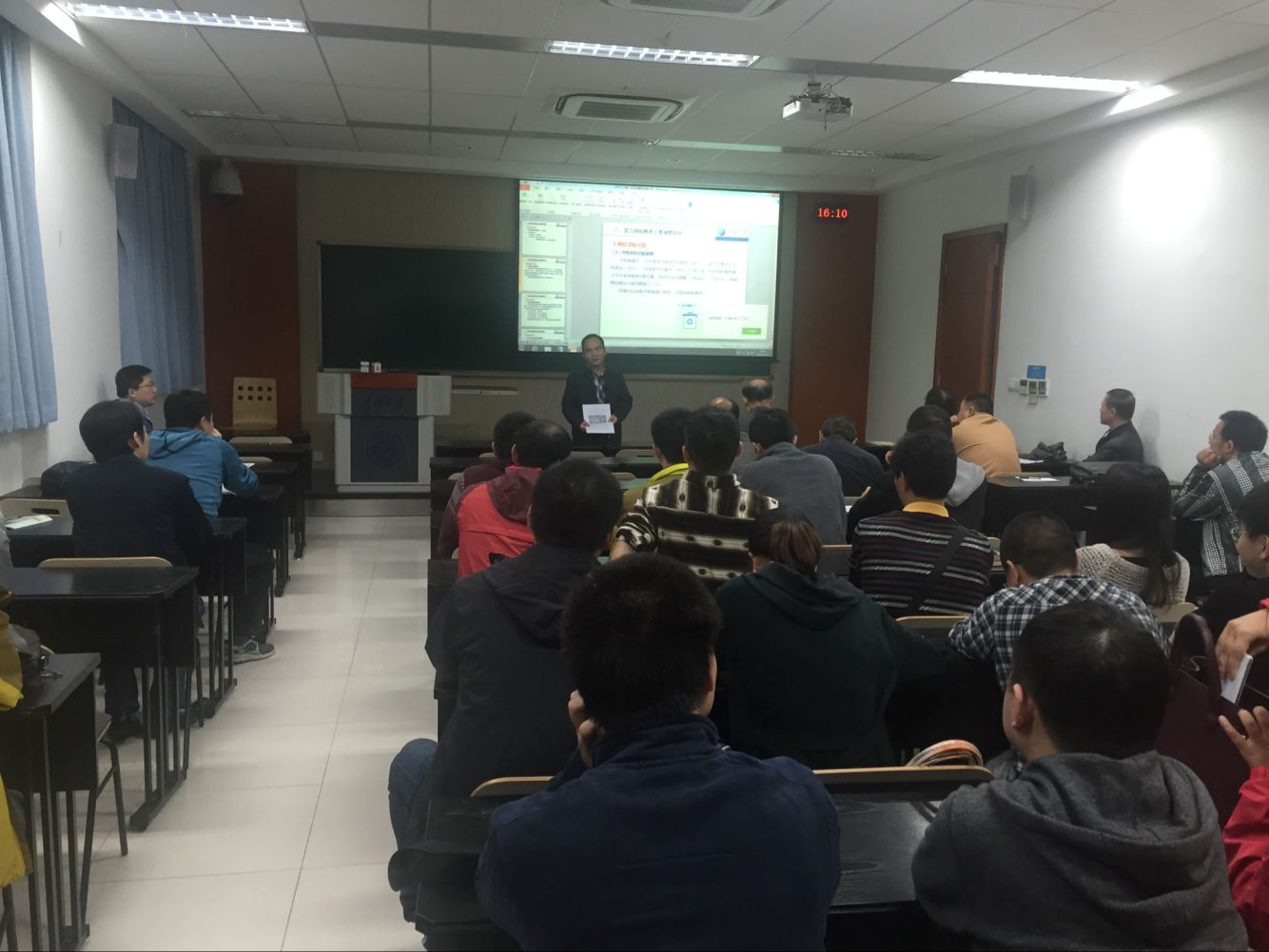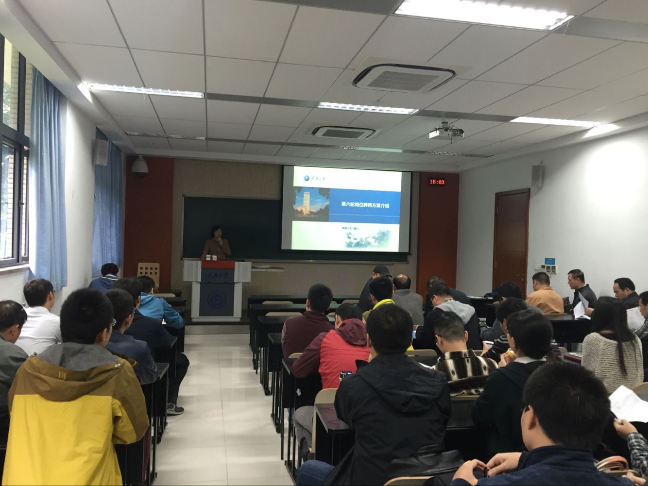 在8教学楼101教室召开全院教职工大会,总结部署学院近期工作,会议由院党委书记万玲主持,全院教职工参会。