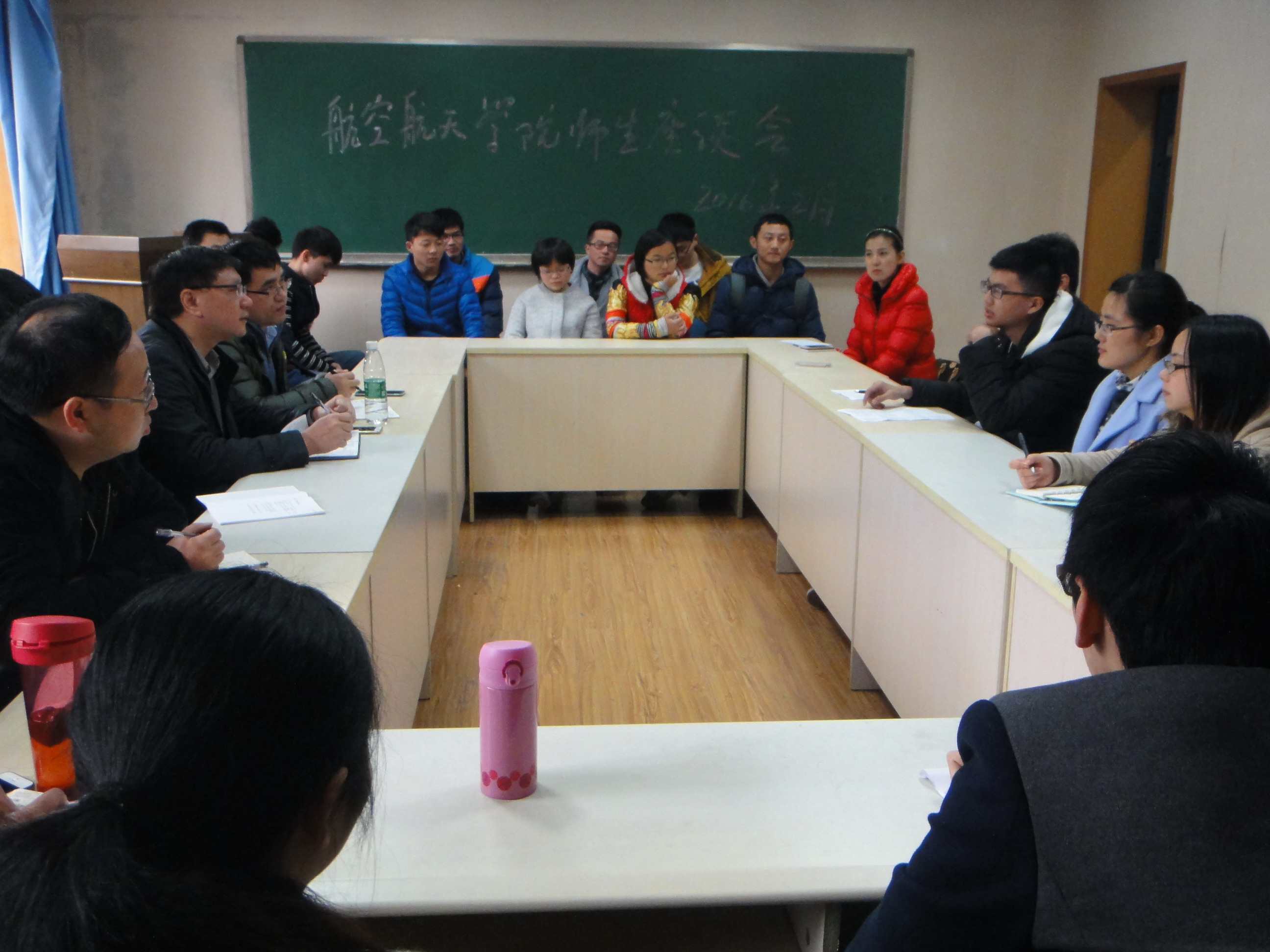 于2月25日下午一点在A7201力学会议室召开本科教学师生座谈会,副院长严波教授、院长助理魏榛教授、院长助理程乐老师、力学系主任蹇开林教授、副系主任张晓敏教授、基础力学系系主任杨昌棋教授,航空航天工程系副系主任姚建尧研究员、学办主任李相林老师、辅导员伍丹老师、本科教务秘书陈洪等相关老师和学院各班级的学生代表共30多人参加了会议。
