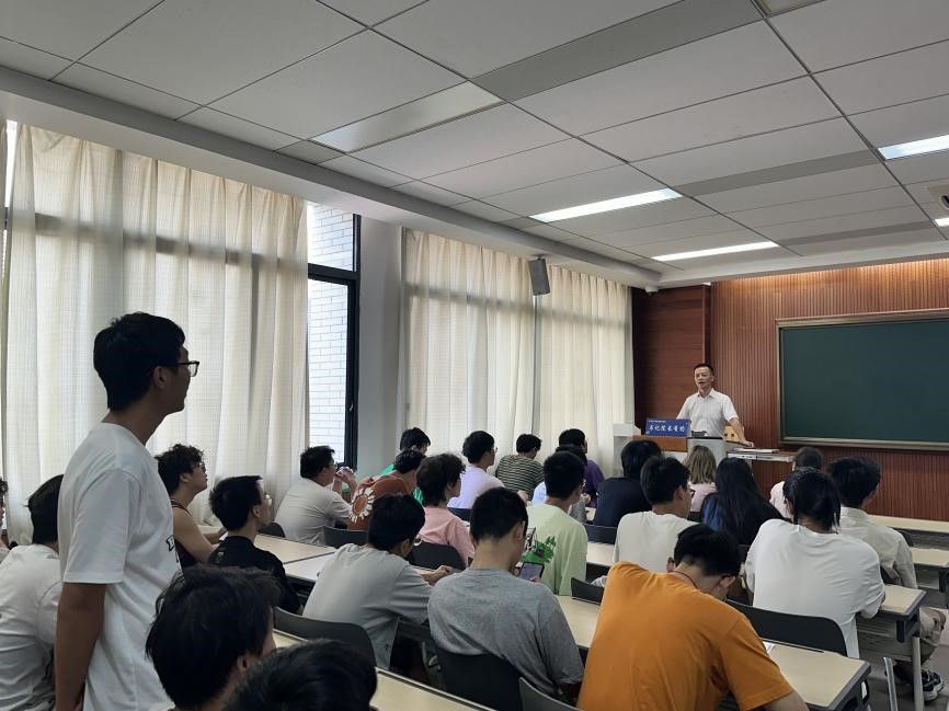 在交流中,奉飞强调大学和中学最大的不同是“学习模式”的不同,最大的挑战来自于“自我管理”。学校的平台不仅是知识的海洋,更是自我管理与成长的试炼场,提醒同学们要根据自身的情况,制定具体的分阶段目标,要把大学每个阶段的具体小目标,和个人人生规划的大目标结合起来;要直面竞争,目标、途径和方法措施要有机协调,合力共振,扎扎实实推进,才能有所成就。奉飞还建议同学们要定期进行短周期反馈总结,分析时间精力的分布构成,才能准确把握自己的整体状态。奉飞还特别提醒同学们,应当把认真研读并深刻理解学校及学院颁布的各类管理办法和规章制度视为大学生活的重要一课。这不仅是对学校秩序的尊重,更是对自我成长的负责,这些规章制度能够为同学们在今后的学习生活中指引方向,帮助同学们更好地规划大学生活。