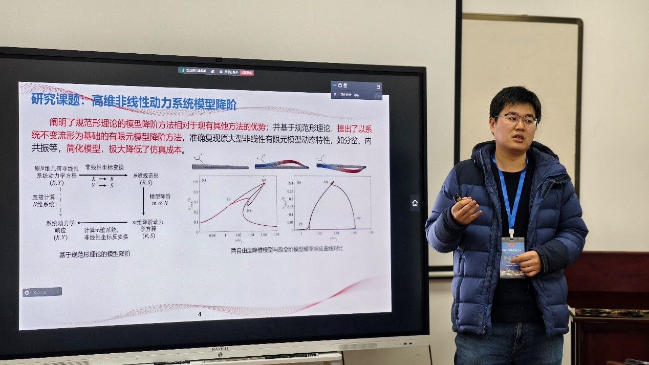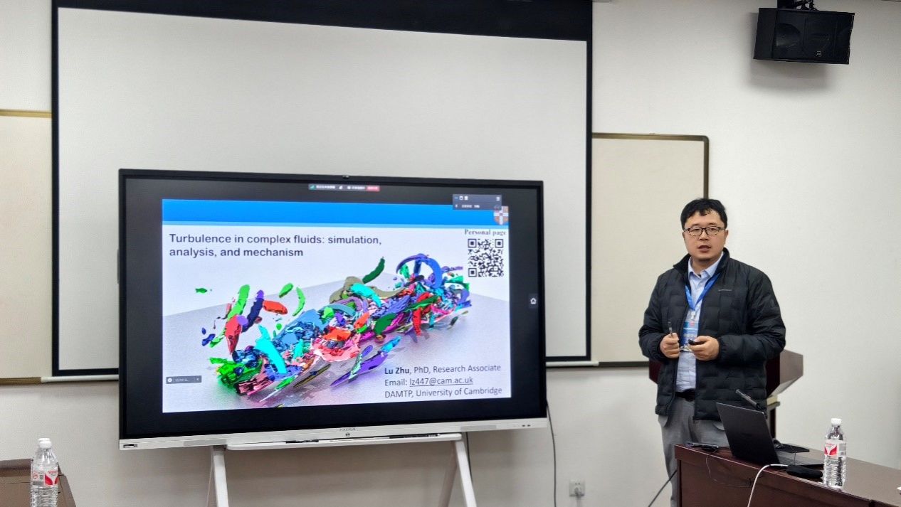 随后,四位青年学者围绕各自的研究前沿领域进行了精彩的学术报告。剑桥大学的朱路博士介绍了关于复杂流体中的湍流模拟、分析及机制研究,拉蒙鲁尔大学的邓杰博士分享了声学黑洞波动控制理论的研究进展,丹麦技术大学的马宏博士介绍了航空航天材料成型工艺及形性调控机理的研究成果,帝国理工学院的沈宜昌博士,作为玛丽居里学者,分享了航空航天柔性结构非线性动力学与控制的最新研究成果。各位学者的报告引起了现场的热烈讨论,大家就相关领域的前沿问题进行了深入交流。报告结束后,在院办主任兼人事秘书刘畅和实验中心工程师聂书严陪同下,参会青年学者参观了学院实验中心,进一步了解学院的科研平台与实验设施。