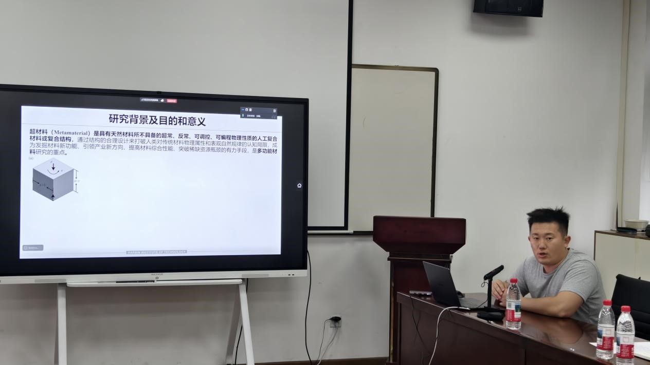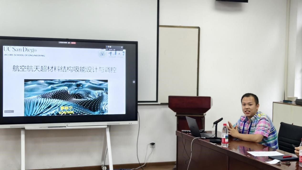 随后,三位青年学者围绕各自的研究前沿领域进行了精彩的学术报告。加州大学圣地亚哥分校的修哈宁博士介绍了航空航天超材料结构吸能设计与调控相关内容,新加坡国立大学的杨航博士分享了可编程机械超材料的多物理场耦合应用,牛津大学的曹贵瑜博士介绍了团队在高精度数值方法与湍流建模应用研究的最新研究成果。各位学者的报告引起了现场的热烈讨论,大家就相关领域的前沿问题进行了深入交流。