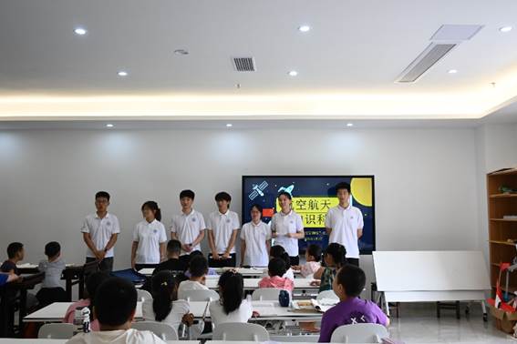 7月7日,实践团前往绵阳梓潼县青少年宫,开展航空航天知识科普和国防教育宣传等活动。以“国防脊梁,青春淬炼”“家国情怀我担当”为主题,发挥扎实的专业基础优势,开展国防科普宣传教育活动,通过细致讲解、模型演示以及互动体验,为孩子们探索航空航天播下了梦想的种子,展现了青年学子以专业所长服务社会、用青春热忱践行使命的责任担当。
