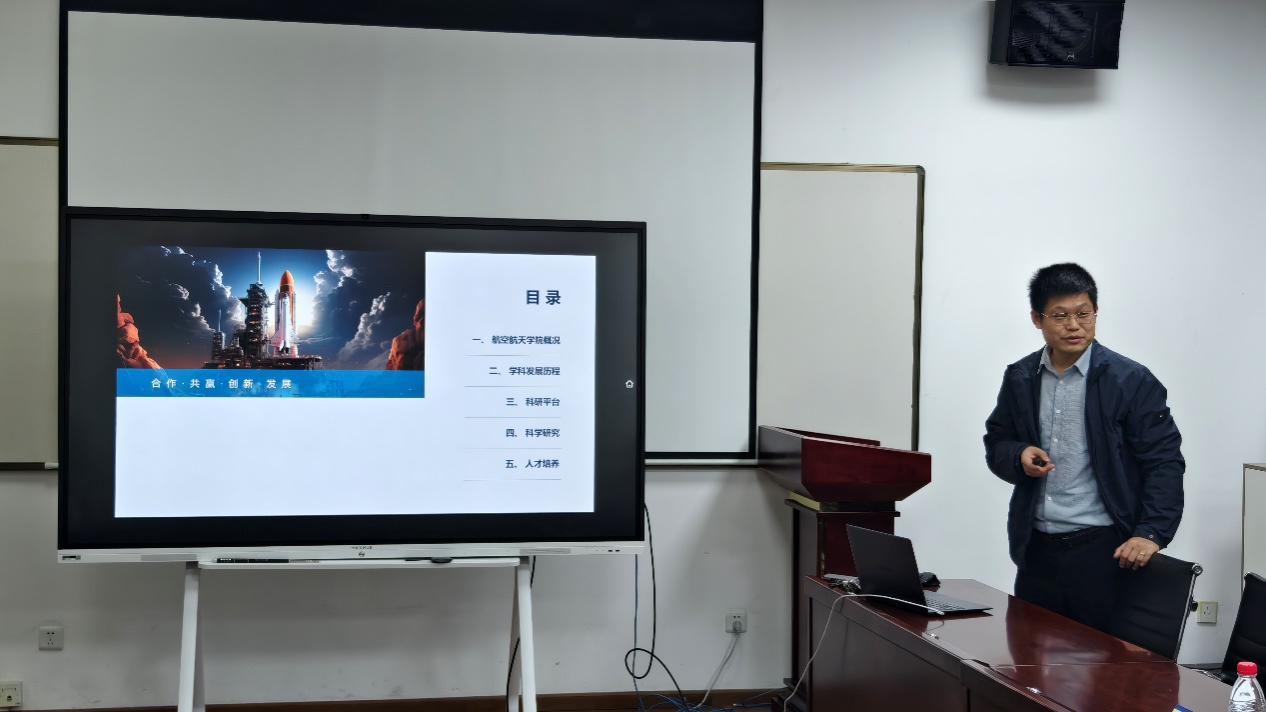 随后,陈立明从历史沿革、学科建设、人才培养、队伍建设、科学研究等方面介绍了学院情况;李东升介绍了中国商飞公司相关情况。
