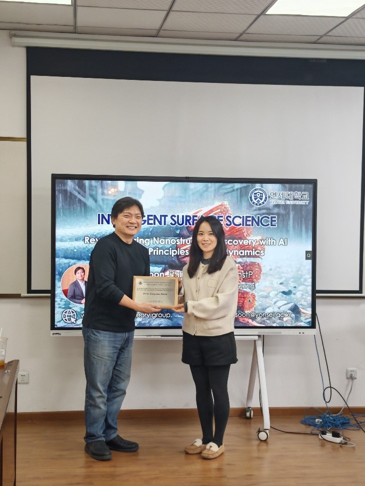 ,并于 A 区理科楼 205 教室出席由工程学部主办的工程科学前沿讲坛,作了题为 “Intelligent Surface Science: Revolutionizing Nanostructure Discovery with AI-guided First-Principles Thermodynamics” 的学术报告。报告由刘许旸副教授主持,工程学部师生30余人出席听讲。