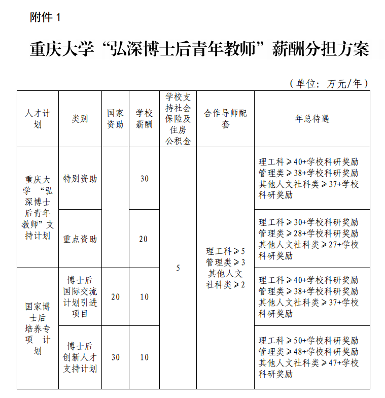 ‘弘深博士后青年教师’薪酬分担方案”(附件1)执行,学校为其缴纳社会保险和住房公积金。
