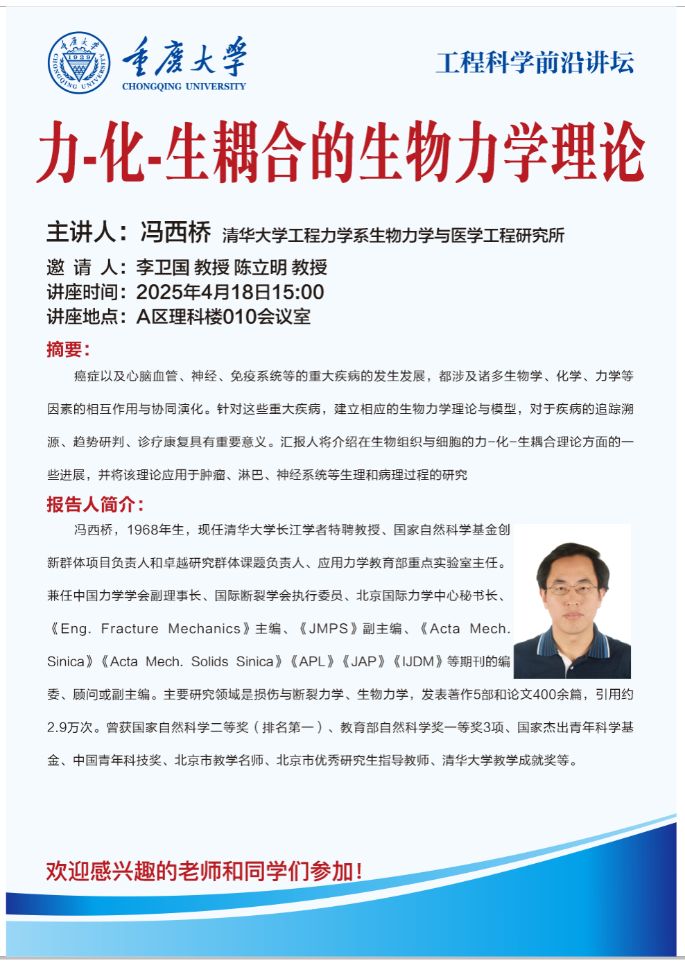【10月10日】智能结构材料与动力学:新力学理论及其应用