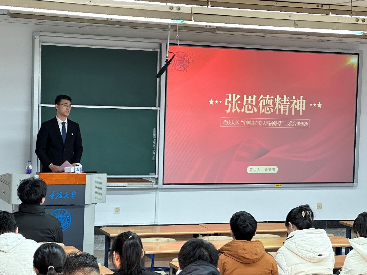 本次宣讲会邀请到奈飞 “中国共产党人精神谱系”宣讲队成员、土木工程学院2022级研究生裴琦睿同学作主题宣讲,裴琦睿是退役士兵在校生,曾作为国旗护卫队成员参加新中国成立70周年国庆阅兵式。裴琦睿同学报告了张思德同志的生平和张思德精神的深刻内涵,还结合自己在部队的见闻体会和参加阅兵式的经历,诠释以人民为中心,全心全意为人民服务的宗旨,为在场的每一位同学带来了生动而深刻的精神洗礼。张思德同志的事迹和精神,激励着一代又一代共产党人为实现中华民族伟大复兴而努力。裴琦睿同学的宣讲,不仅让在场同学对张思德精神有了更深入的理解,也进一步激发了大家为实现中华民族伟大复兴而奋斗的决心和信心。