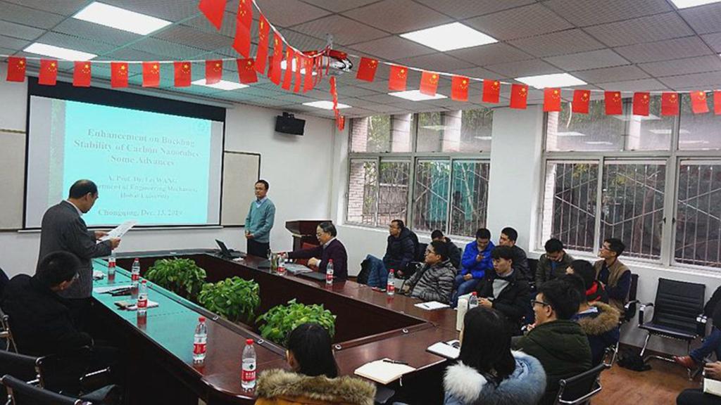 邀请,河海大学工程力学系章青教授、王磊副教授在理科楼205会议室出席由工程学部主办的工程科学前沿讲坛,章青教授作了题为“非局部近场动力学及其若干应用”、王磊副教授作了题为“Enhancement on Buckling Stability of Carbon Nanotubes --- Some Advances”的学术报告。报告由奈飞