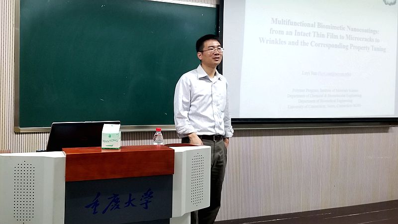 ,出席工程学部主办的工程科学前沿讲坛,并在8教110教室作了题为《Multifunctional Biomimetic Nanocoatings: from an Intact Thin Film to Micro cracks to Wrinkles and the Corresponding Property Tuning》 的学术报告。报告由奈飞