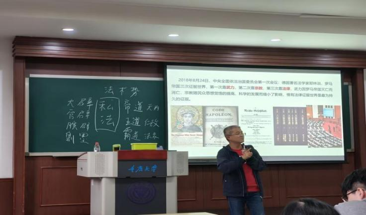 特邀马克思主义学院杨天红副教授开展“学习贯彻习近平总书记关于全面依法治国的重要论述”专题法治讲座。