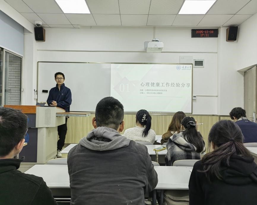 会上,本科2024级三位心理委员分享了实践经验与工作感悟。宁国强同学结合自身经历阐释了心理健康工作的核心要义,强调主动关注是守护同学心灵的关键;孙嘉忆同学分享了融入日常的心理关怀技巧,为班级心理工作的开展提供了行之有效的方法;黄熙惠同学聚焦资源链接能力,从校内资源熟悉、校外渠道了解、班级活动开展等方面,强调了心理委员在营造支持性氛围中的重要作用。