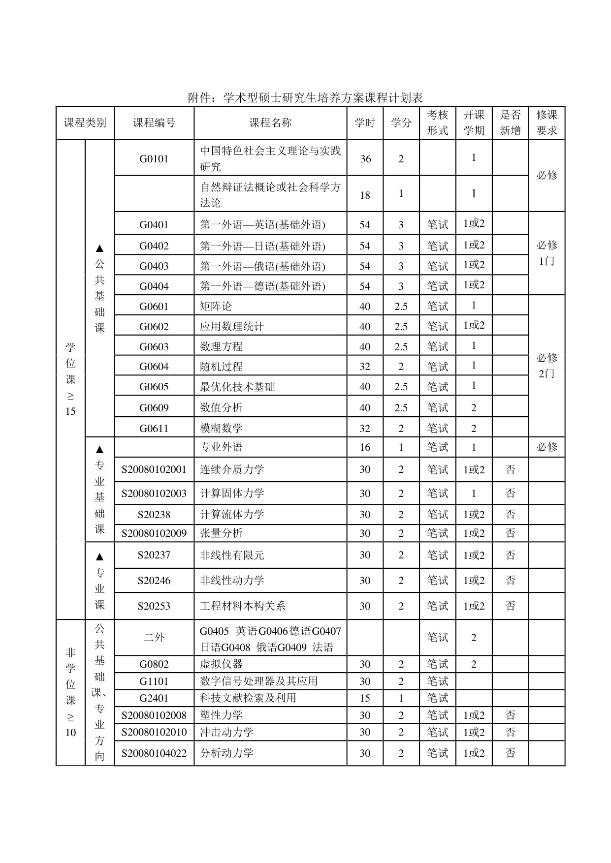力学学术型硕士研究生培养方案