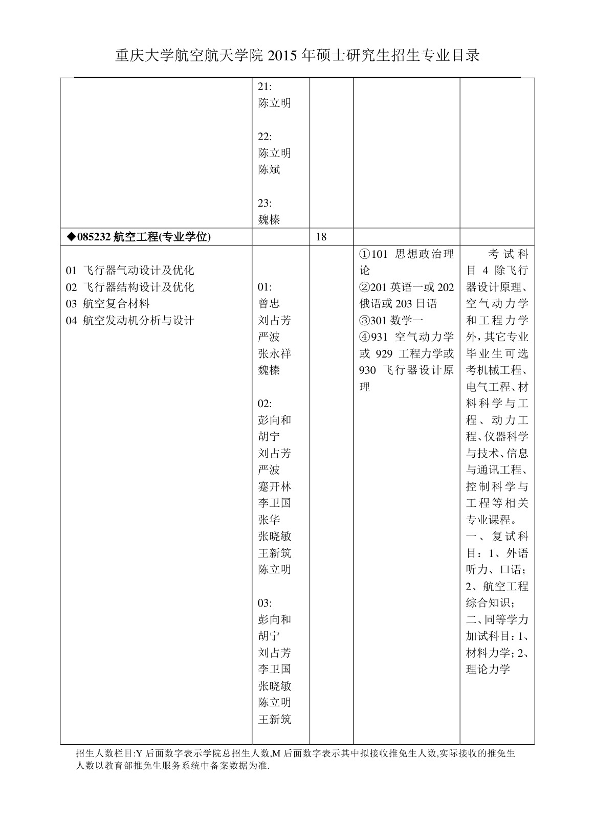 航空工程硕士专业学位研究生招生目录