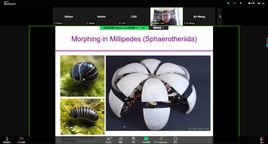 邀请,德国基尔大学教授、德国科学院院士Stanislav Gorb于2025年4月7日晚7点参加由国际合作与交流处、国际学习中心主办的全球前沿学科系列讲座(G-Seminar),并在线上作了题为“Learning from Nature: Biologically Inspired Robots”的精彩报告。讲座由学院弘深杰出学者Fedor Borodich教授与金晓清教授共同主持。