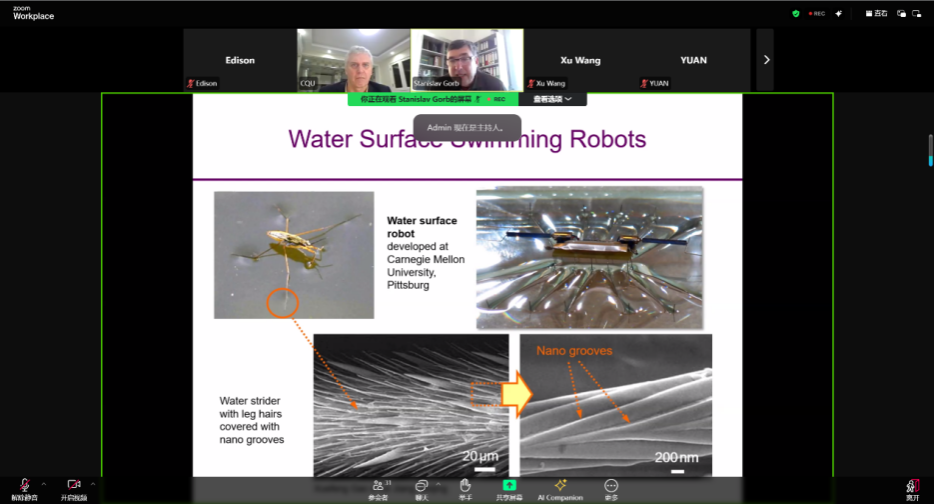 Gorb教授的演讲内容丰富、见解独到,极大地激发了线上师生的浓厚兴趣。报告结束后,与会者们纷纷踊跃发言,就仿生机器人学的最新进展、应用前景以及面临的挑战等议题展开了热烈而深入的交流。大家各抒己见,思想碰撞,不仅加深了对仿生机器人学的理解,更激发了新的研究灵感和合作意向。