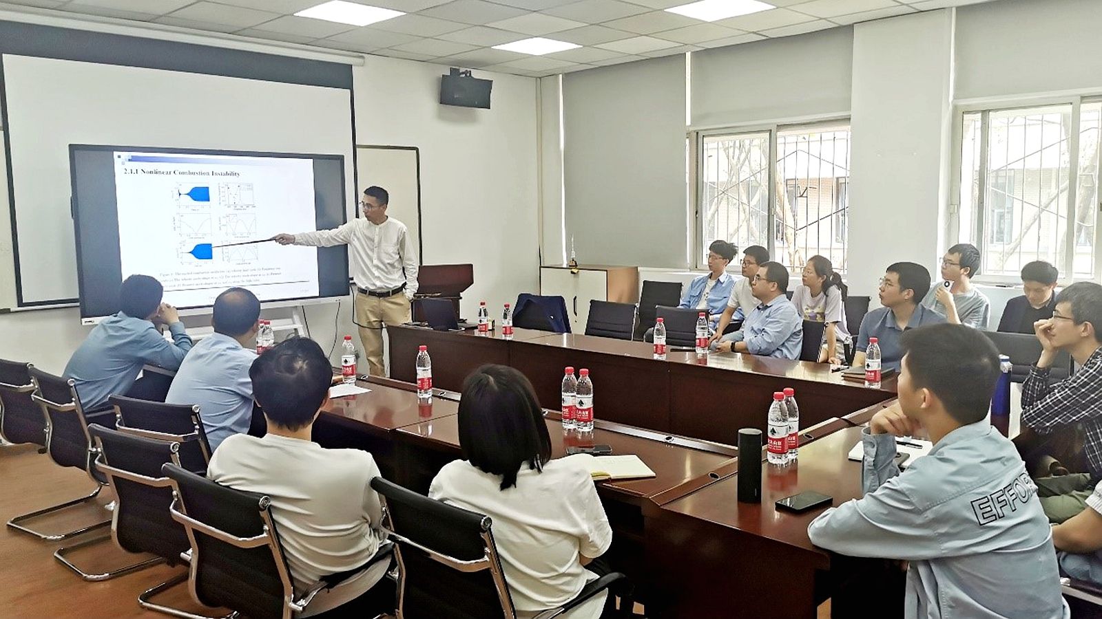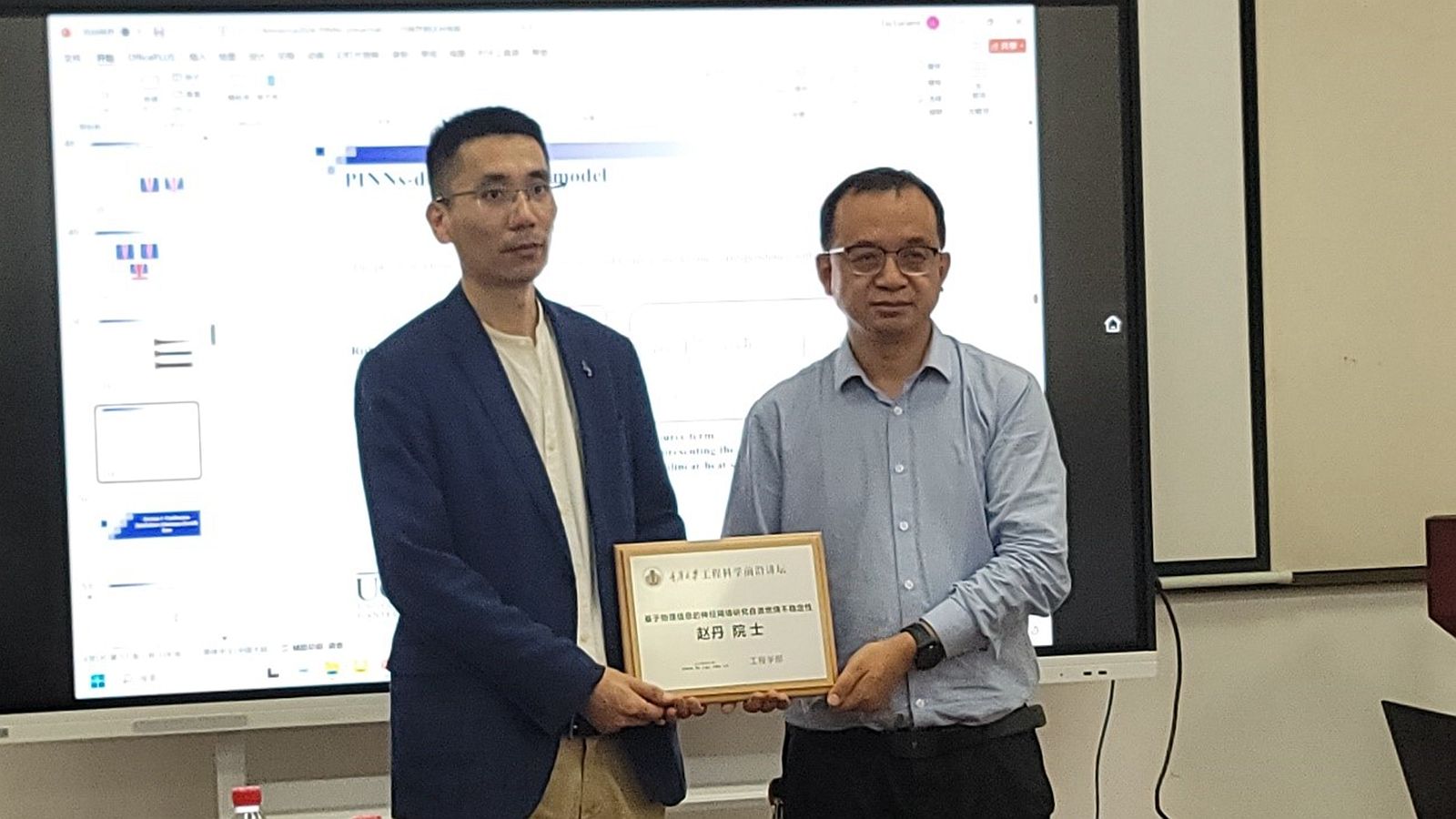 副院长(主持工作)李卫国主持,学院副院长姚建尧、陈立明及工程学部师生30余人出席听讲。在报告中赵丹院士首先对坎特伯雷大学作了简要介绍,随后以《基于物理信息的神经网络研究自激燃烧不稳定性》为题,对航空航天推进系统中广泛存在的燃烧不稳定性进行了系统性阐释,并介绍了团队在采用基于物理信息的神经网络方法研究燃烧不稳定性的最新进展。报告结束后,现场师生就基于物理信息的神经网络的建模方法与赵丹院士进行了深入探讨。