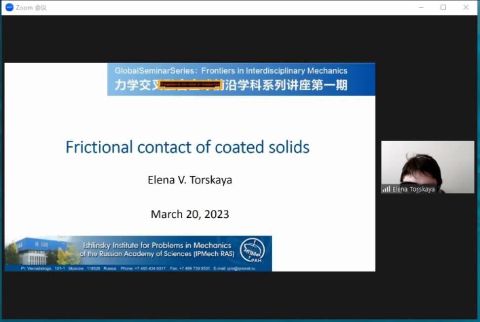 “力学交叉融合”全球前沿学科系列讲座第5期和第6期分别在线上召开。讲座先后邀请俄罗斯科学院教授Elena V. Torskaya开展了主题为“Frictional Contact of Coated Solids”的学术讲座、白俄罗斯国家科学院院士Nikolai K. Myshkin开展了主题为“Sustainable Development and Tribology Advances”的学术讲座。