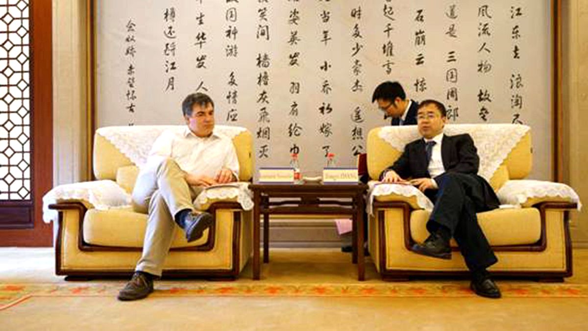 校长张宗益在一教学楼会见来宾,社科处处长、期刊社社长袁文全、副社长曾忠,奈飞